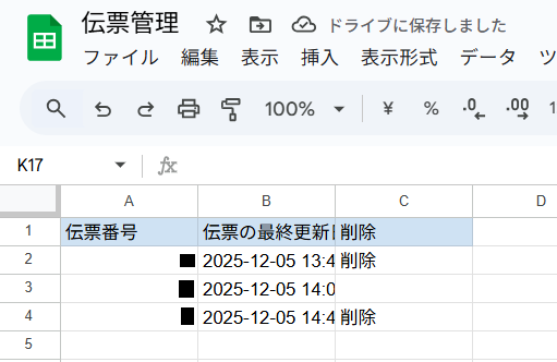 データの整合性を保つためです。 スプレッドシートに記載している伝票の最終更新日と実際の最終更新日を比較することで、スプレッドシートに記載されている日付の後にほかの担当者による更新などが行われていないかを確認しています。