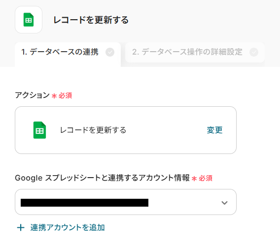 ステップ7:Google スプレッドシートのレコードを更新する設定