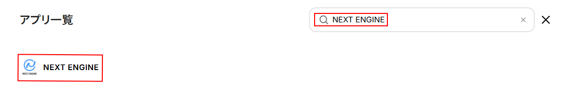 NEXT ENGINEをマイアプリ連携 +新規接続 ボタンをクリックすると、入力欄が表示されます。NEXT ENGINE と入力し、表示されたアプリをクリックしましょう。 ・NEXT ENGINEのマイアプリ連携方法は「NEXT ENGINEのマイアプリ登録方法 」をご参照ください。