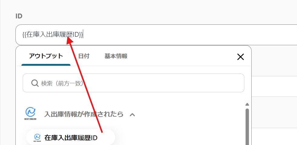 1.NEXT ENGINEで入出庫情報が作成されたらGoogle スプレッドシートに追加するフローです。