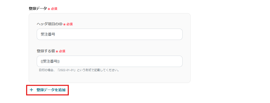 複数のデータを取得したい場合は、「+登録データを登録」をクリックしてください。