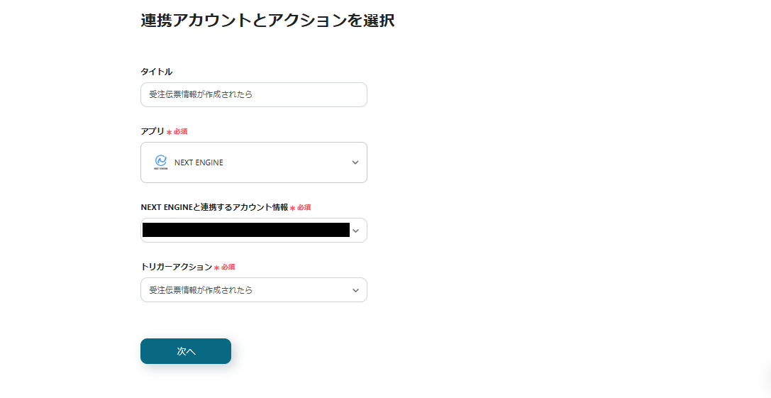 まず、「受注伝票情報が作成されたら」という項目を設定していきます。