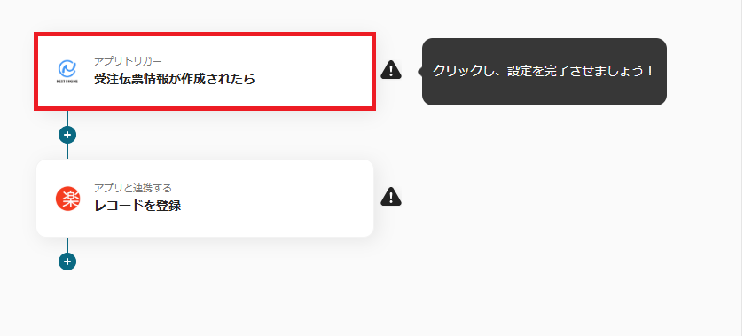 これで、「NEXT ENGINEで受注伝票が作成されたら楽楽販売に追加する」フローの完成です。