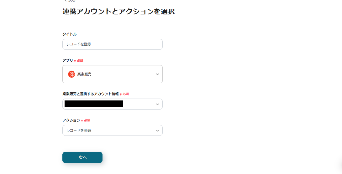 続いて、「レコードを登録」という項目の設定を行っていきます。