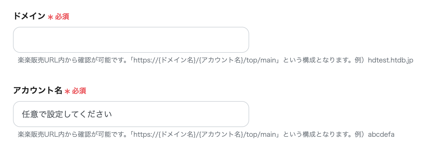 (3)次の画面で、「ドメイン」や「アカウント名」などの項目に注釈に沿って情報を入力します。