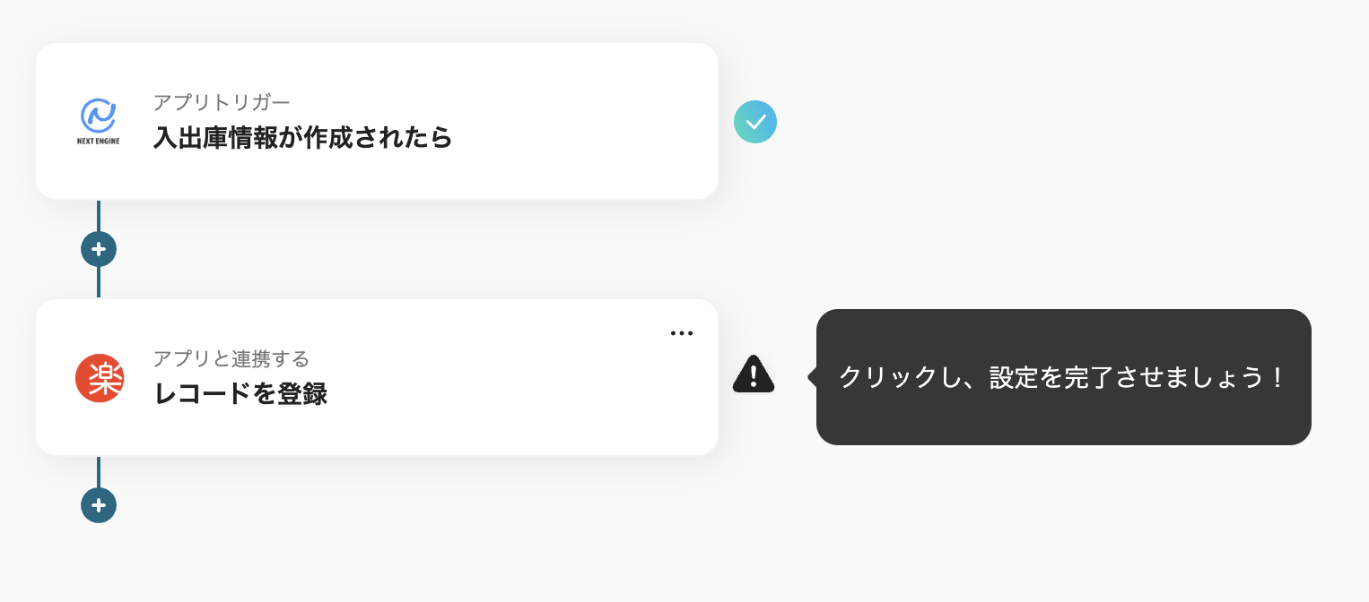 (1)最後に、2つ目のアクション「レコードを登録」をクリックしましょう。