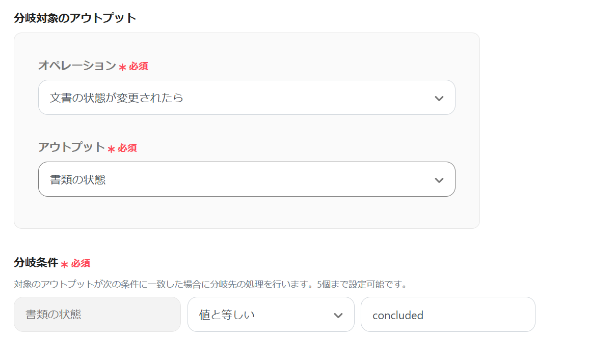 続いて「文書の状態が完了(concluded)である」をクリックします。