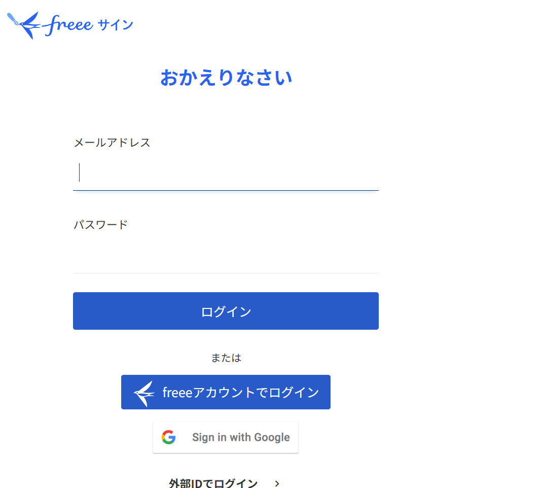 freeeサインと検索し、お使いのIDでログインしてください。