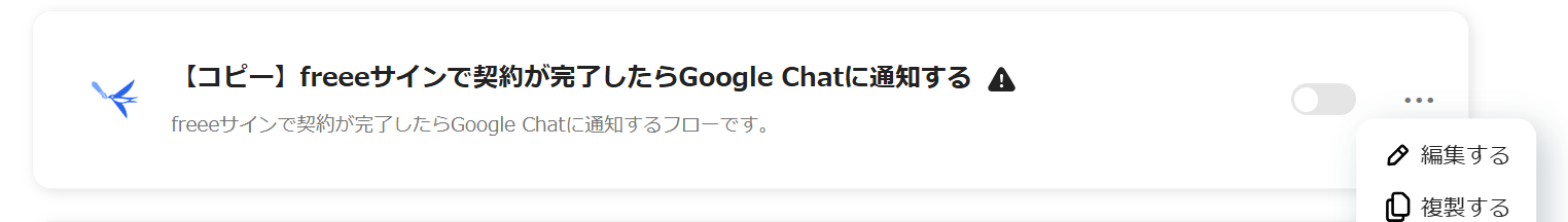 マイアプリ登録が完了したあと、「freeeサインで契約が完了したらGoogle Chatに通知する」フローボットを作成していきます。