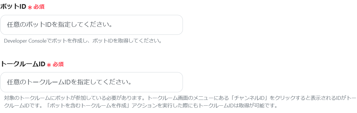 次に、「ボットID」と「トークルームID」を設定します。