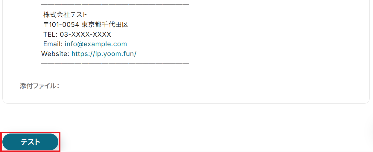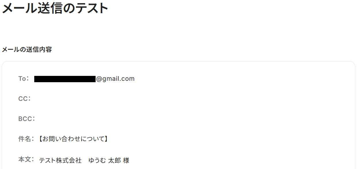 「次へ」をクリックするとメール送信のテスト画面になるので、内容に誤りがないか確認しましょう。