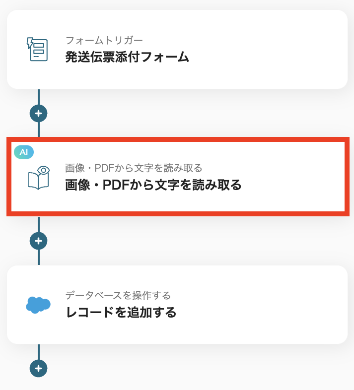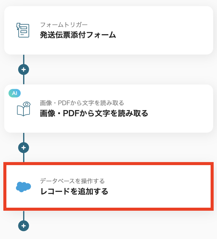 次に、OCRで読み取った発送伝票の情報を、Salesforceに登録するアクションを設定します。