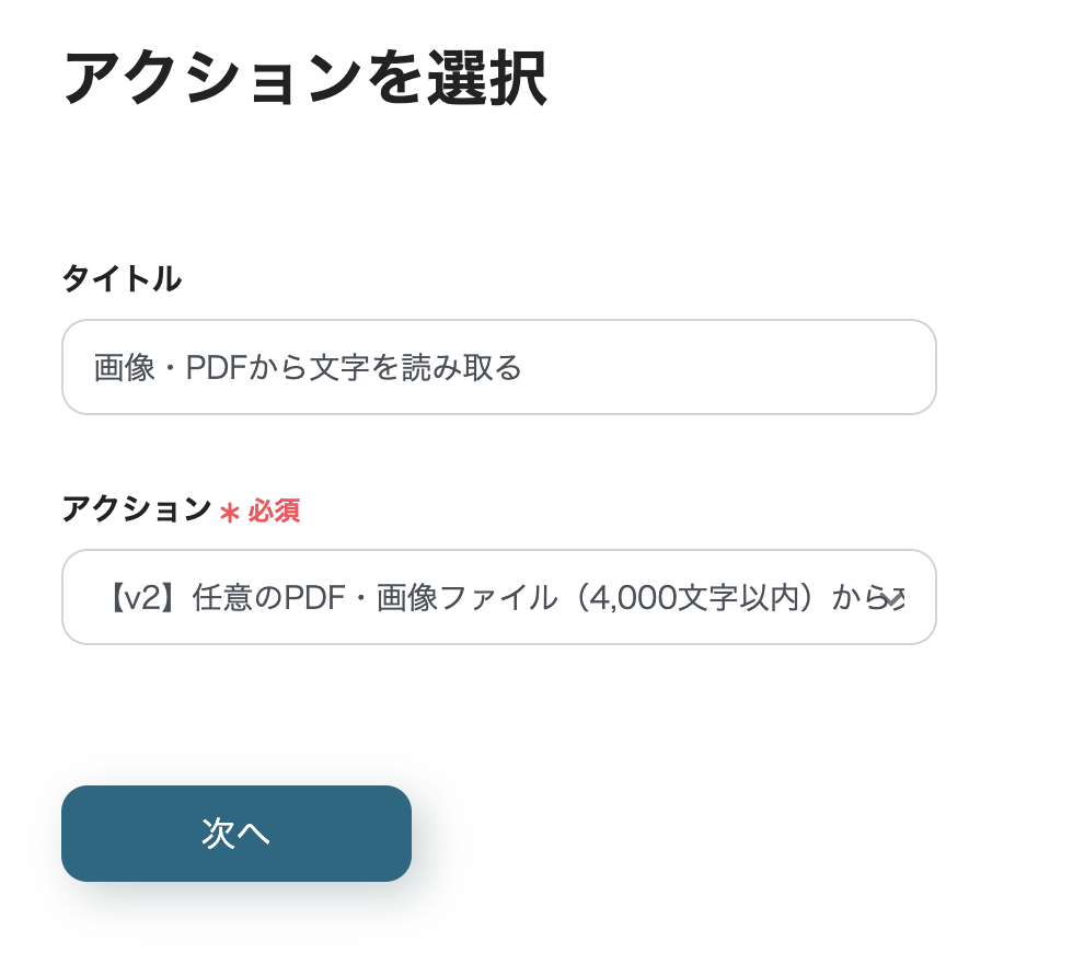 次に、YoomのOCR機能を使って、発送伝票の画像から文字データを読み取るアクションを設定します。