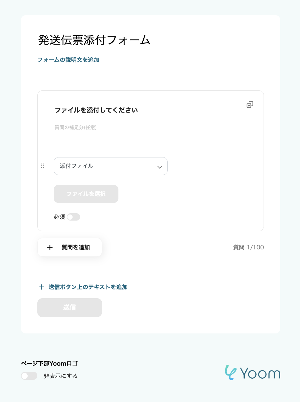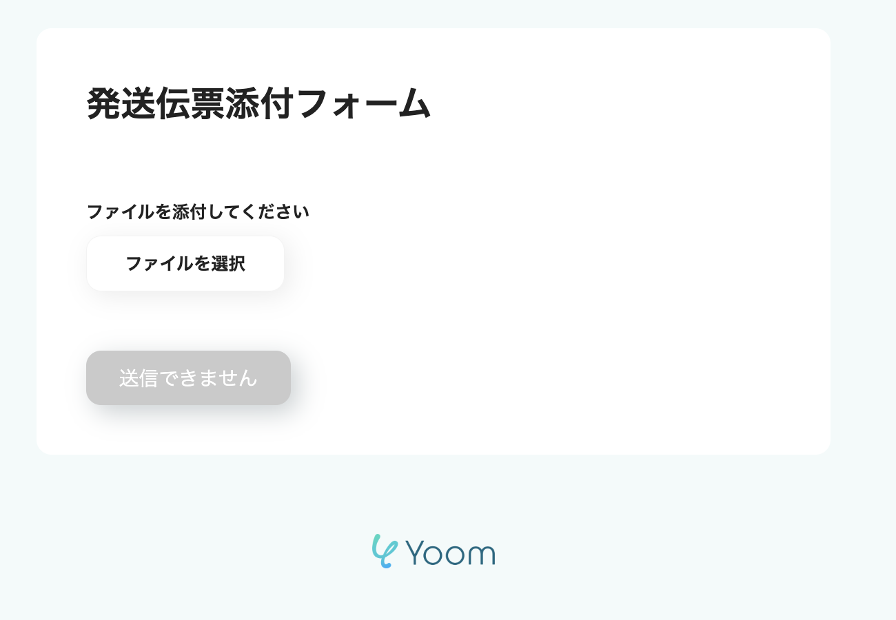 ファイルの添付方法:「ファイルをアップロード」を選び、テスト用に発送伝票の画像を添付してください。