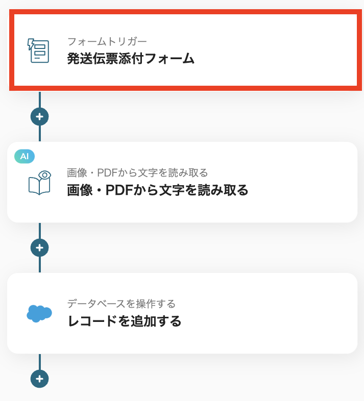 しかし、この自動化フローを活用すれば、伝票をスキャンするだけでデータを自動的に読み取り、Salesforceにすぐに格納できます。
