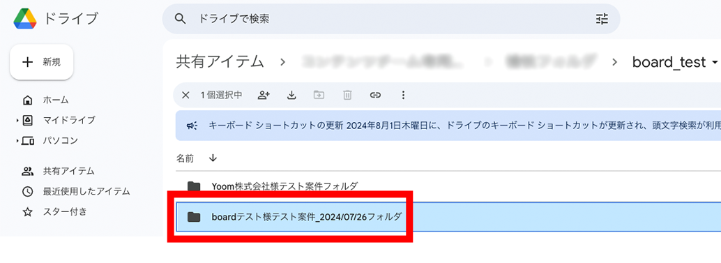 ・boardに登録された案件ごとに専用のフォルダが自動で作成されるため、関連ファイルを整理しやすく、必要な情報をすぐに見つけることができます。