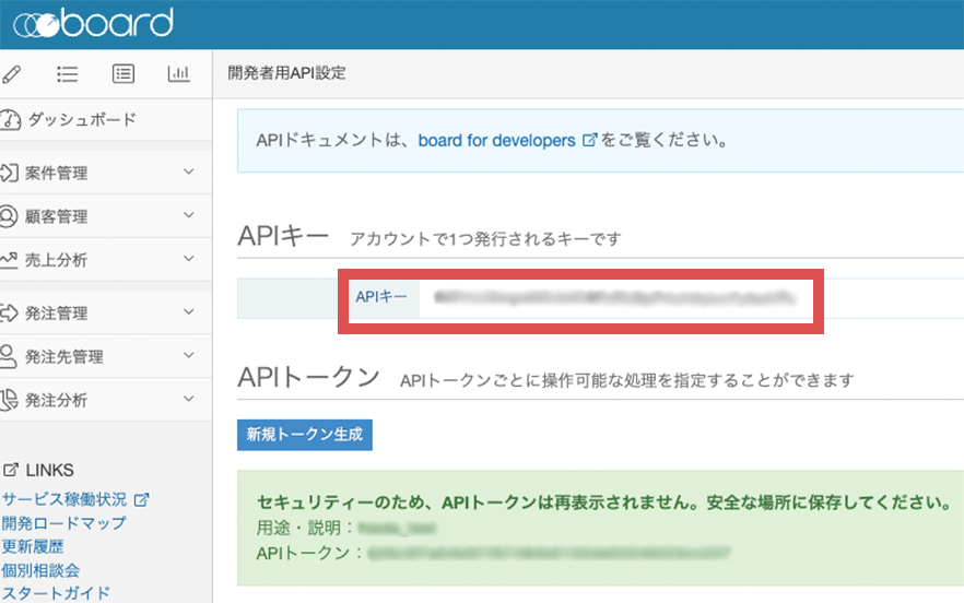 APIキーはboardのサイトから確認できます。