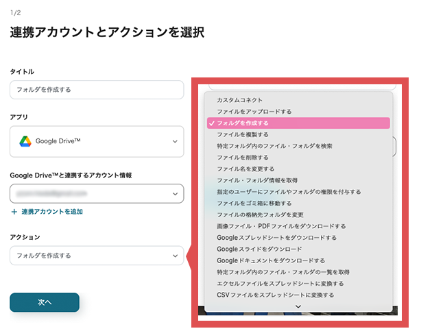 ステップ3 アプリを連携する「Google Driveフォルダを作成する」