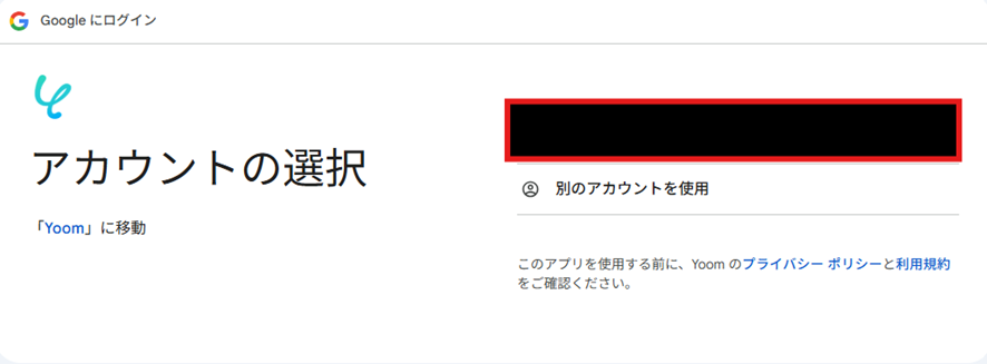 Yoomと連携したいアカウントを選択します。