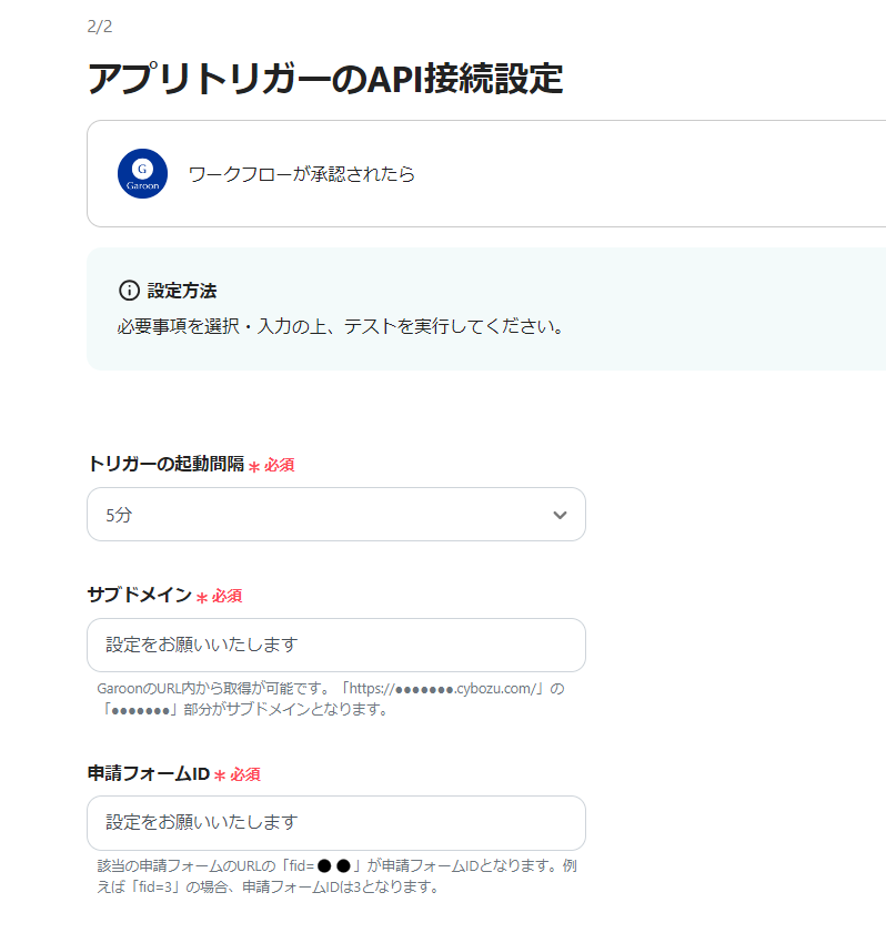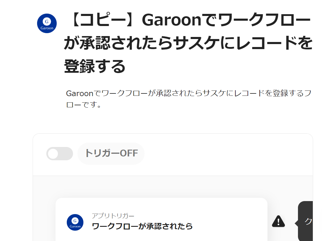 今回は、【Garoonでワークフローが承認されたらサスケにレコードを登録する】というフローを作成します。