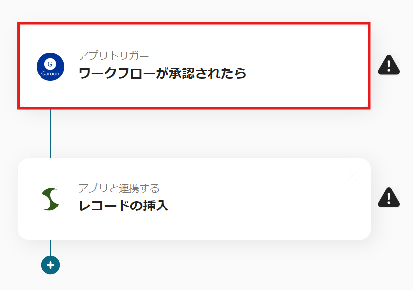 9) これで【Garoonでワークフローが承認されたらサスケにレコードを登録する】というフローの完成です。