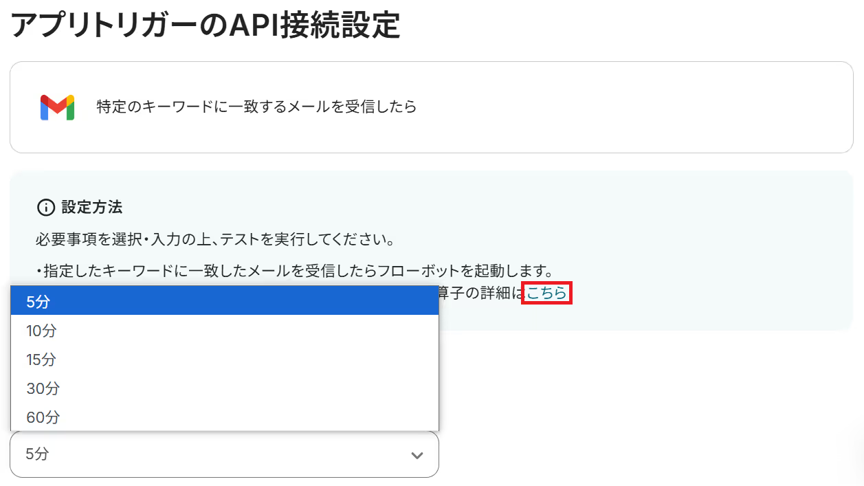 Google スプレッドシート、GmailのそれぞれとYoomを連携してください。 トリガーは5分、10分、15分、30分、60分の間隔で起動間隔を選択できます。 プランによって最短の起動間隔が異なりますので、ご注意ください。