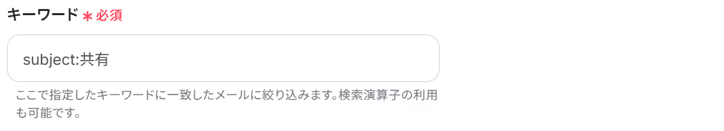 Google Chatへ送信するメッセージは、固定のテキストだけでなく、トリガーで受信したメールの件名や送信者、本文の一部といった情報を変数として埋め込み、より具体的な通知内容を作成することが可能です。 ■注意事項
