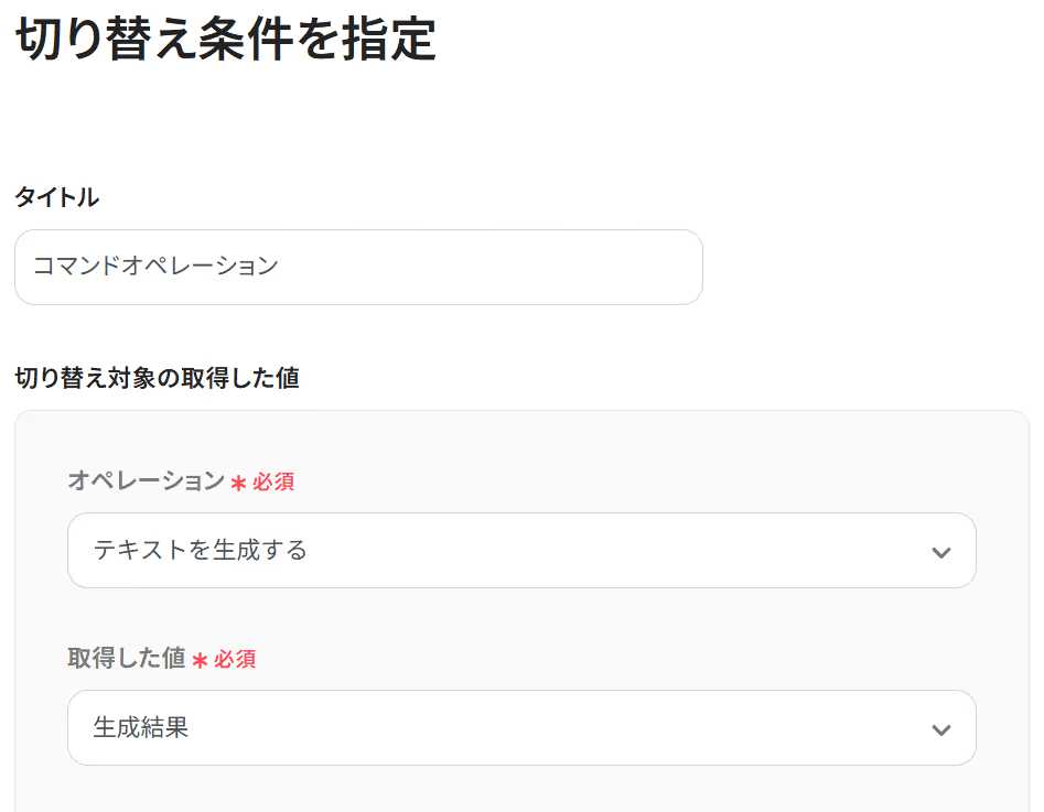 分岐機能では、添付ファイルの有無を判別する条件を設定し、ファイルがある場合のみ文字起こしを実行するなど、後続の処理を柔軟に分岐させることが可能です。 「音声データを文字起こしする」オペレーションでは、処理の精度や言語の特性に応じて、利用するAIモデルを複数の選択肢の中から任意で選択できます。 Google スプレッドシートの「レコードを追加する」アクションでは、出力先となるスプレッドシートIDやシートID、どの列にどの情報を追加するかを任意で設定してください。 ■注意事項