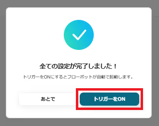 トリガーをONにし、フローが起動するかを確認