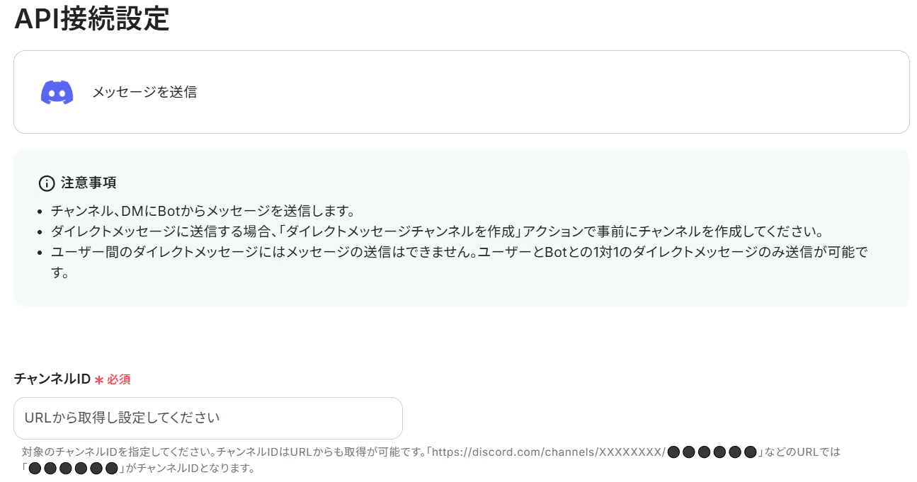 Discordへの通知アクションでは、通知先のチャンネルを重要度ごとに任意で設定することが可能です。 通知メッセージの本文には、メールの内容だけでなく、「【至急】」などの固定テキストを追加して、視認性を高めることもできます。 ■注意事項