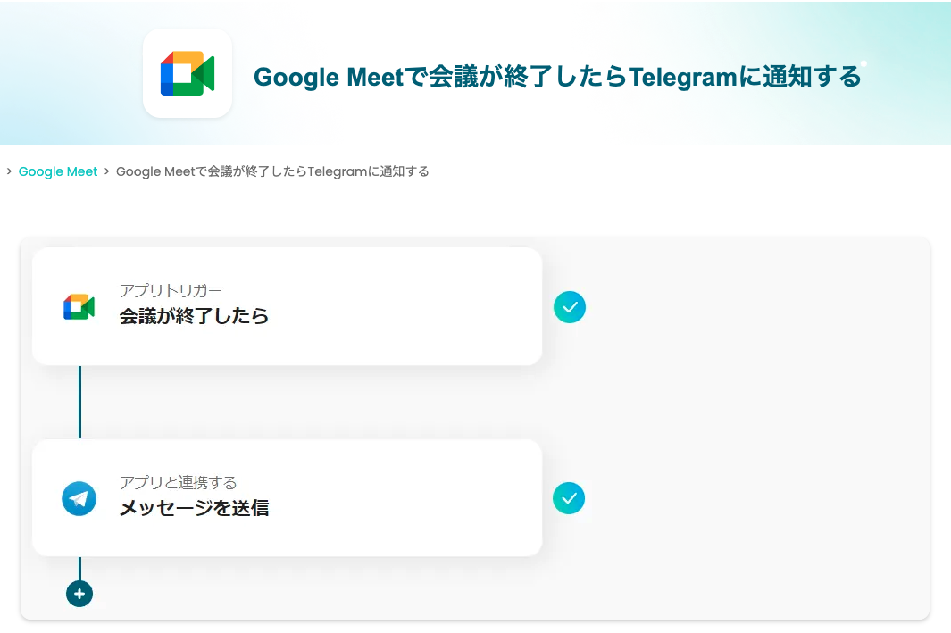 このテンプレートは、Google Meetで会議が終了するとTelegramに自動で通知を出すことができます。