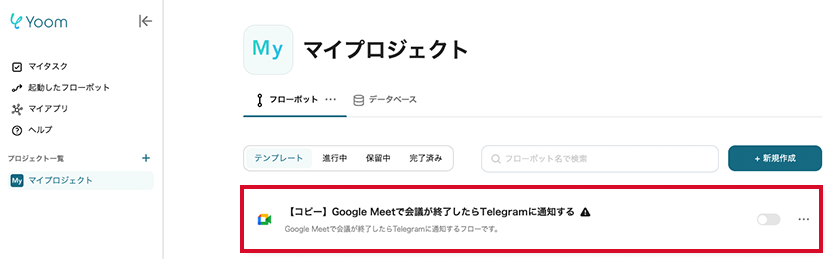 ステップ2 Yoomのテンプレートをマイプロジェクトへコピーする
