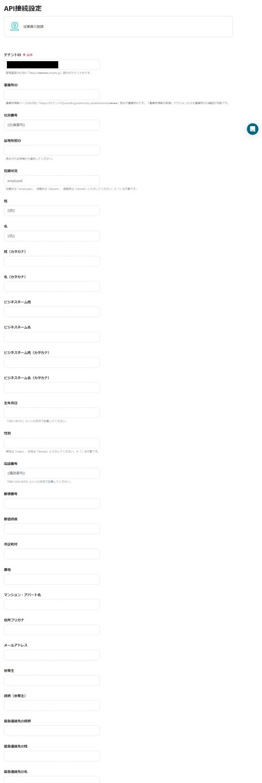 テナントIDは管理画面URL内の「https://●●●●●●.smarthr.jp」部分を入力します。