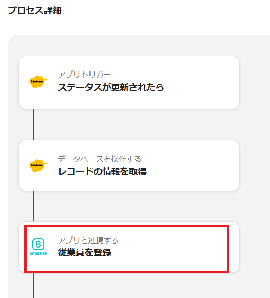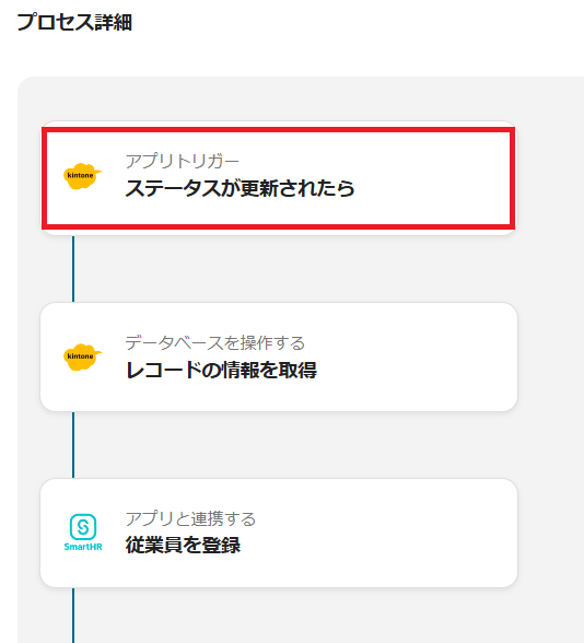 kintoneのステータスが更新されたら、自動的にSmartHRの従業員情報を登録します。
