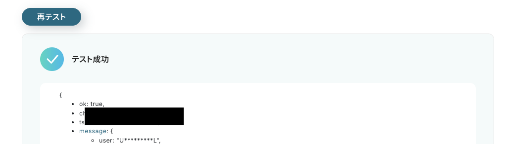 なお、アウトプットを引用せず固定値を入力してしまうと、毎回同じ内容が通知されるのでご注意ください。