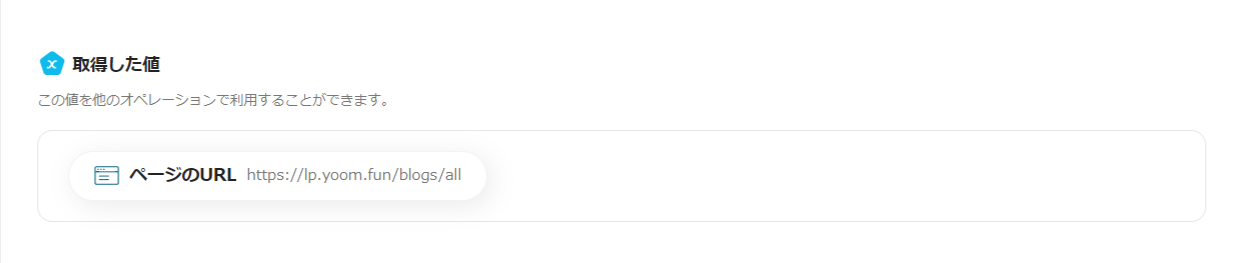 例えば「Yoom公式HPのブログの左上(最新記事)のURLを取得する」という設定だと以下のようになります。
