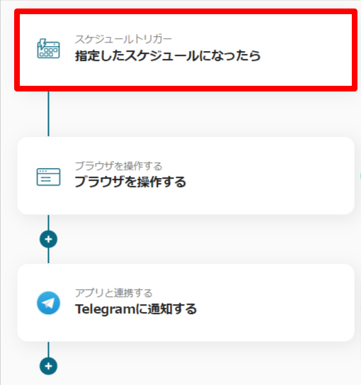 今回のフローは「毎日Webサイトの情報を取得してTelegramに通知する」というものです。