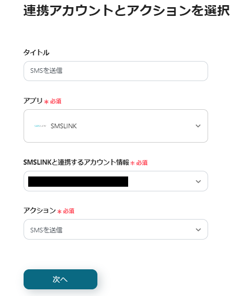 Notionの情報を用いてSMSLINKからSMSを送信するフローです。