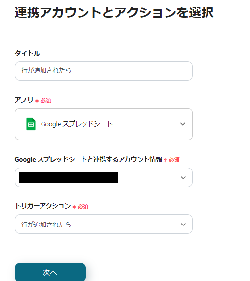 アプリトリガーの「行が追加されたら」という項目を選択しましょう。