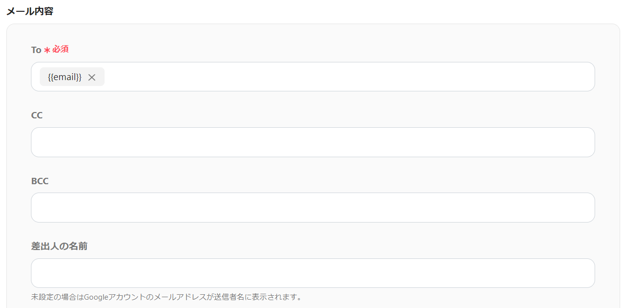 まずは宛先の設定ですが、テンプレートを使用しているため既に上記のような状態になっていれば大丈夫です。