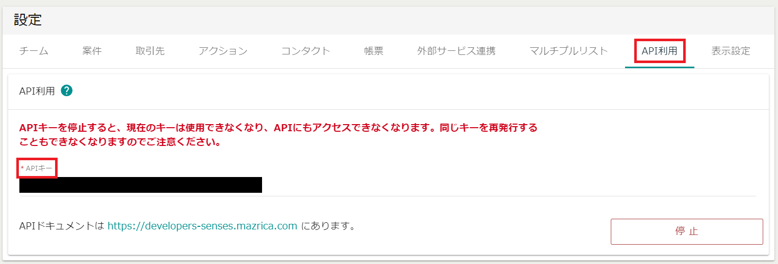 赤枠の管理者設定をクリックし、続けてタブからAPI利用を押します。