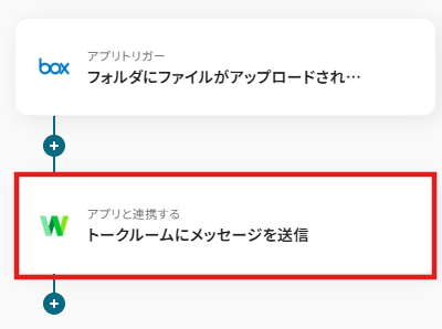Boxにファイルがアップロードされたら、LINE WORKSのトークルームにメッセージを送信するフローです。