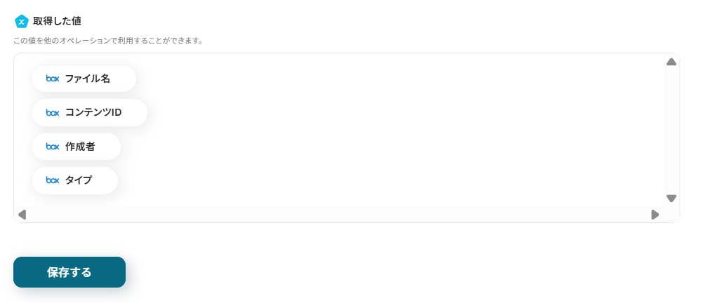 このフローを活用することで、BoxにアップロードされたファイルをOCRで解析し、必要な情報をLINE WORKSに自動通知することが可能です。