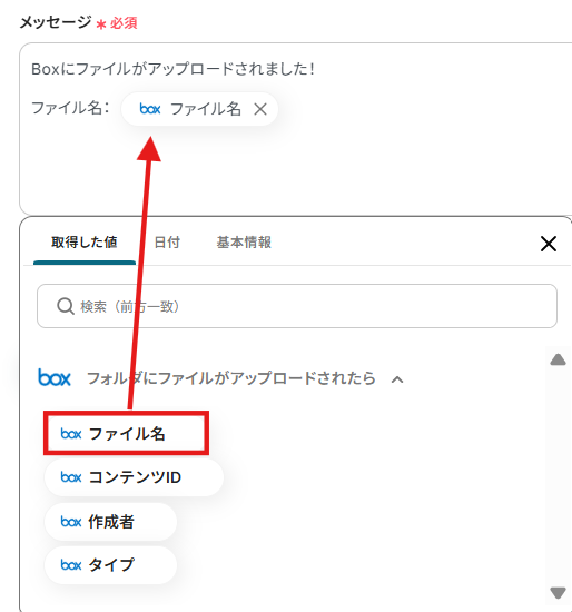 Boxにファイルがアップロードされたら、LINE WORKSのトークルームにメッセージを送信する
