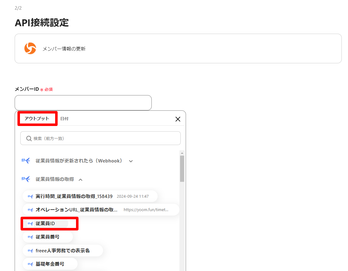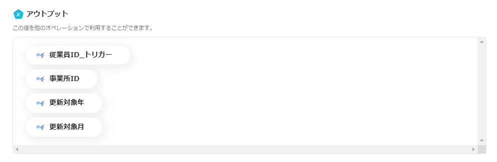 この際には、2番目の「従業員情報の取得」フローで取得したアウトプットの情報を選択していきましょう。