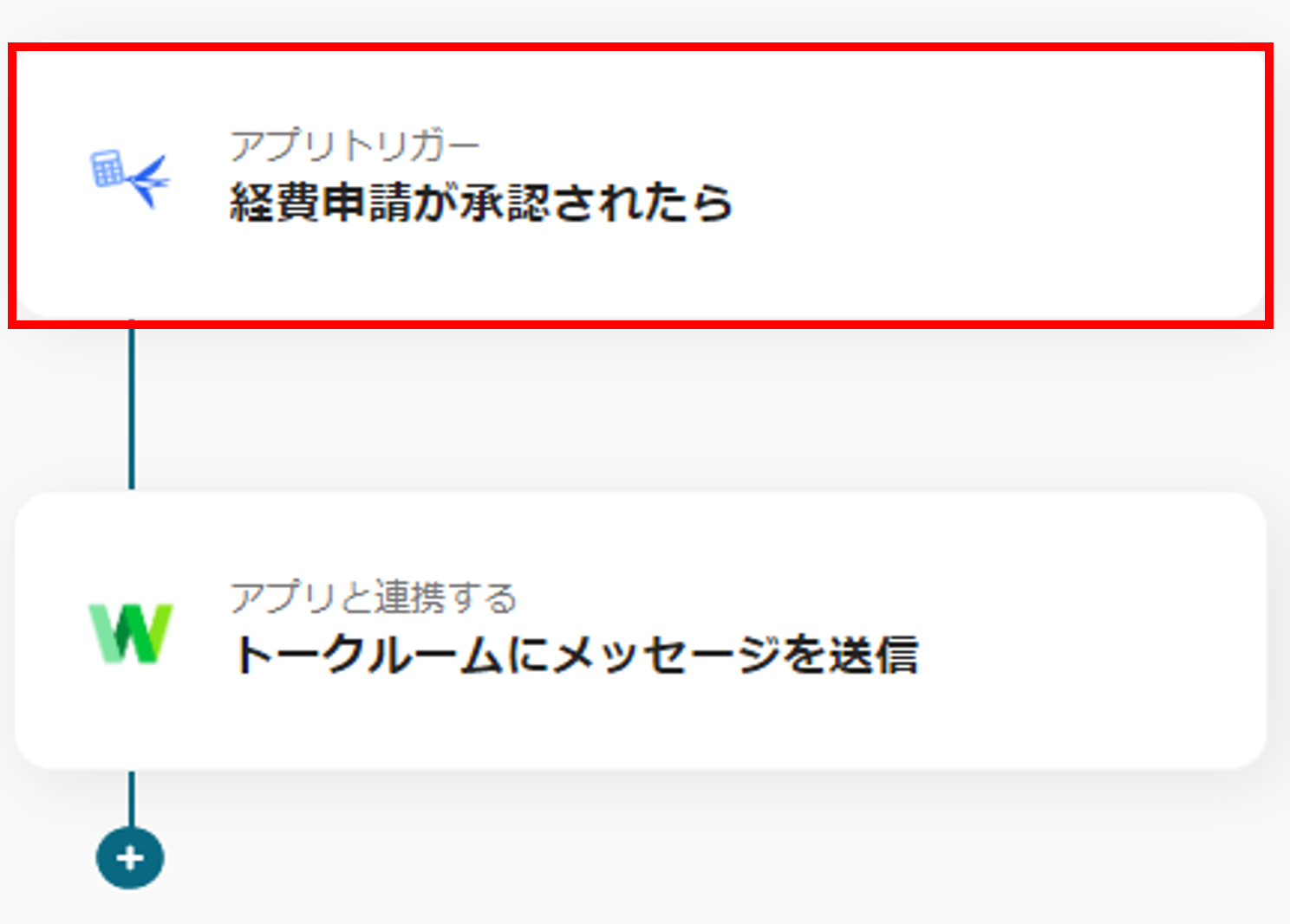 (4)トリガーアクションは「経費申請・各種申請・支払い依頼が承認されたら」を選択