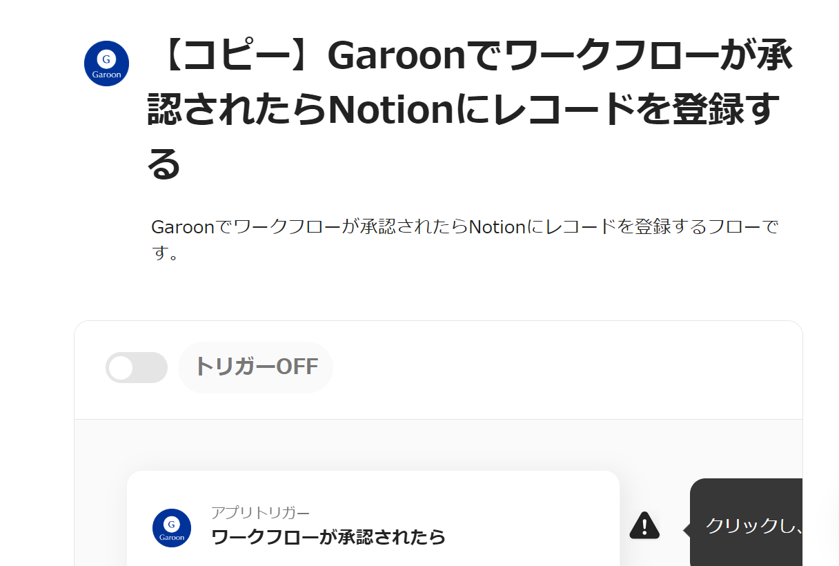 今回は、【Garoonでワークフローが承認されたらNotionにレコードを登録する】というフローを作成します。