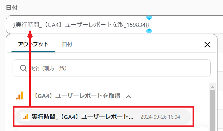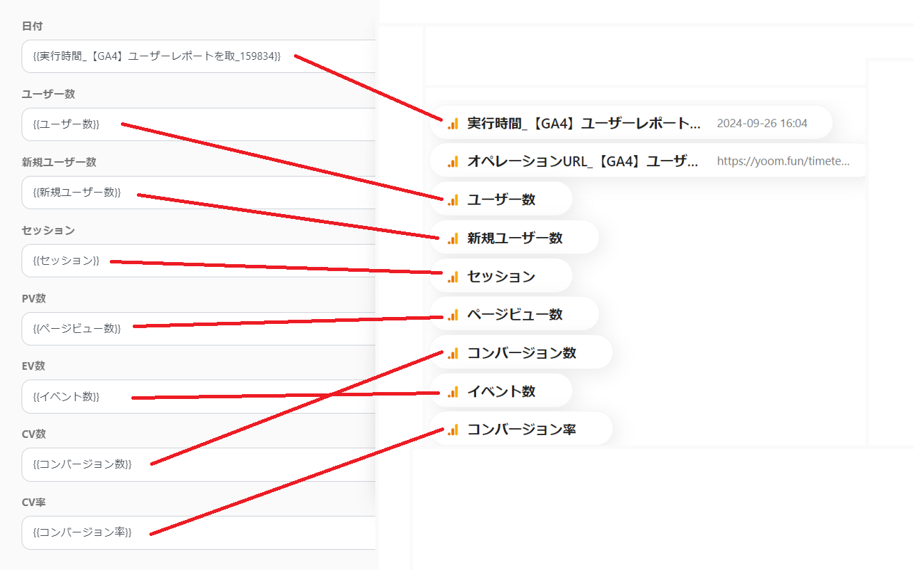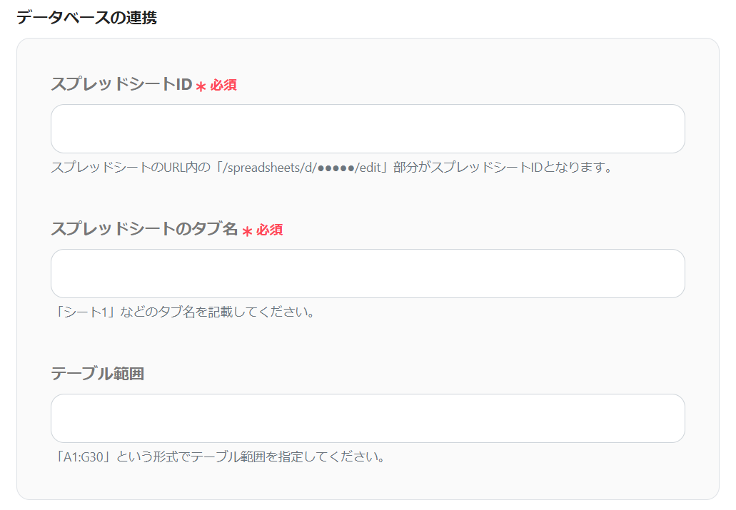 上記画像のボックス名は、用意したGoogle スプレッドシートに依存しています。そのため、表記とは異なる場合がありますが、設定方法は同じです。