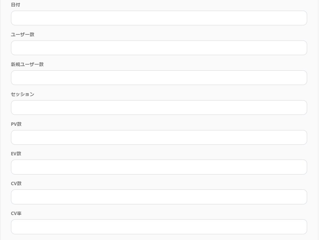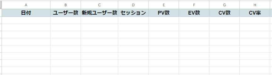 Google アナリティクスから取得した解析結果を保存するフォーマットを用意しましょう。