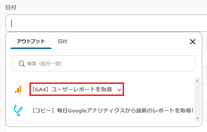 1.Google アナリティクスのアイコンの「【GA4】ユーザーレポートを取得」を開く